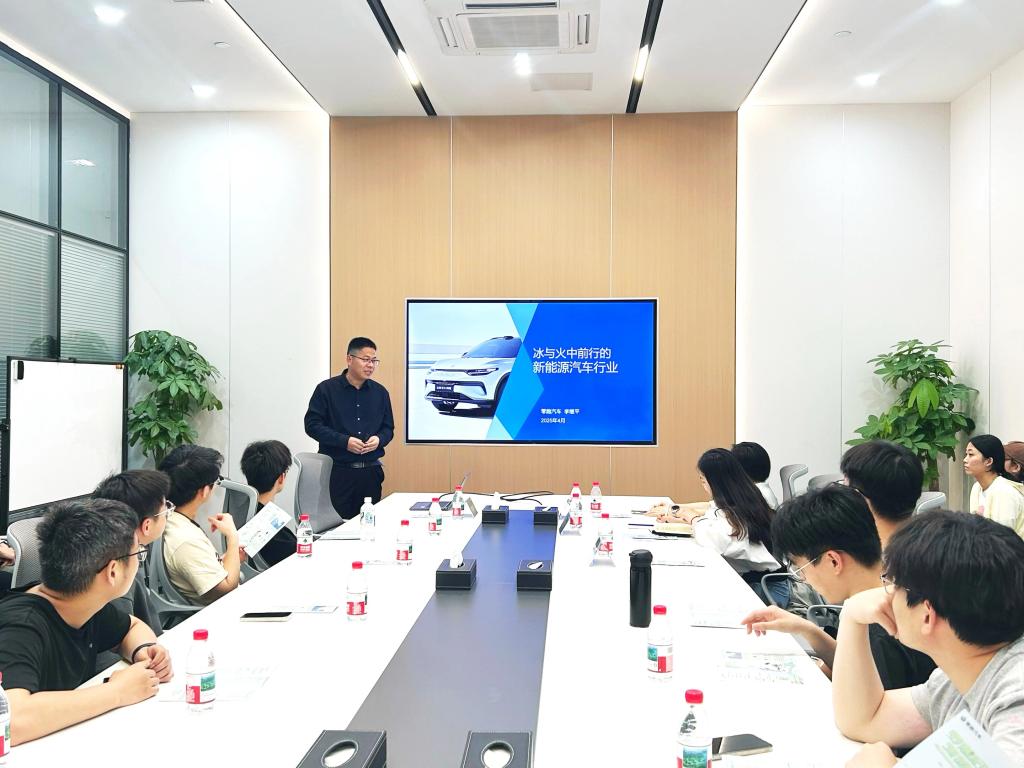 随后,李总监为同学们带来一堂主题为《新行业与准“新”人》的职场微课,他详细讲述了全球及中国新能源汽车的发展历程与发展趋势,带领大家回顾了中国新能源汽车发展道路上的曲折历程,并介绍了零跑汽车的18禁、核心竞争力、未来的人才需求等。他还结合企业各类校招岗位的招聘要求,总结提炼了优秀职场“新”人应当具备的“专业+学历+英语”的基础条件和“沟通力+执行力+抗压力”的核心能力,也为同学们后续生涯规划指明了方向。互动环节中,同学们积极提问,李总监也耐心给予解答,同学们收获颇丰。
