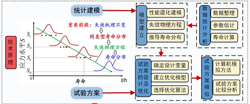 加速寿命试验是在保持失效机理不变的前提条件下,通过试验设备有序地提高试验应力水平,加快产品失效并获取失效数据,利用高应力下的寿命数据外推得到正常应力或低应力条件下的产品寿命,从而实现产品寿命的快速评估。为了提高试验效率及评估结果精度,需研究统计模型、试验方案设计、数据统计分析方法等内容。