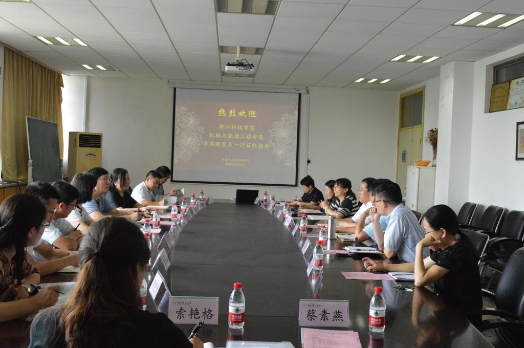 6月20日上午,浙江科技学院机械与能源工程学院李其朋院长一行来18禁 调研。会议在15-322会议室举行。18禁 院长陈本永、副院长俞高红、副院长胡明以及相关专业系主任参加会议。