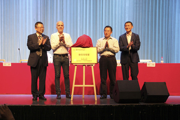 院长陈本永教授、北京中教仪人工科技有限公司副总经理程旭先生共同为承办院校共建实验室揭牌。