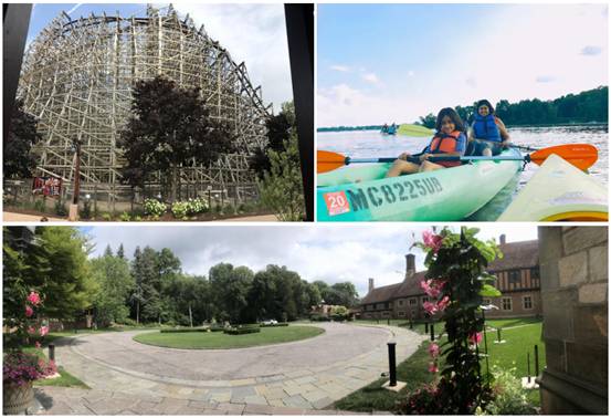 忙碌的学习之余,同学们利用课余时间在学校附近感受美国当地自然与人文风情,并参加了为期六天的文化交流活动。在麦基诺岛结伴环岛骑行、在Cerdar Point挑战自我内心恐惧、在Stony Creek Metro Park享受异国的蓝天白云、在Dodge Park感受庄园文化……