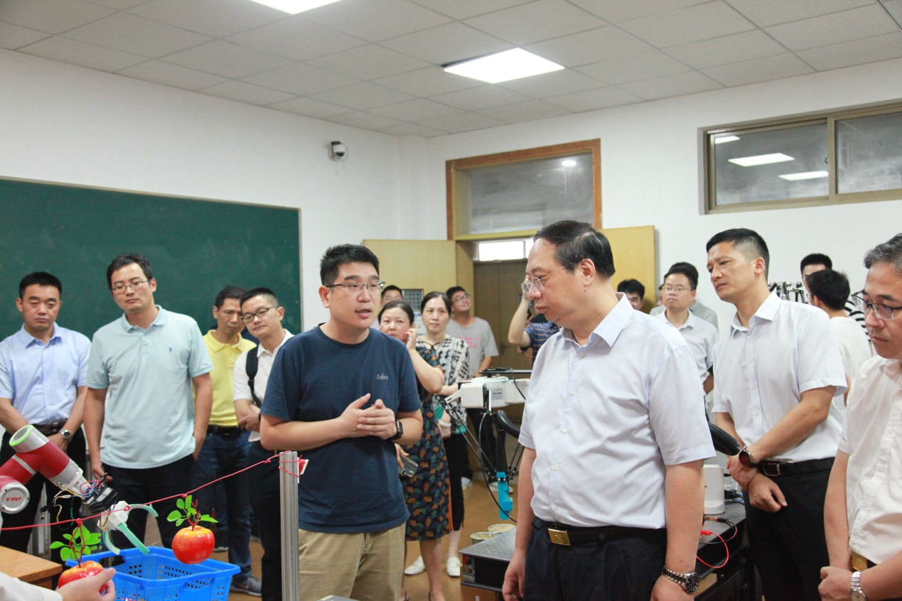 “采摘机器人”实验室,现场观摩茶叶采摘机器人、番茄采摘机器人、草莓采摘机器人实验运行。