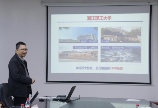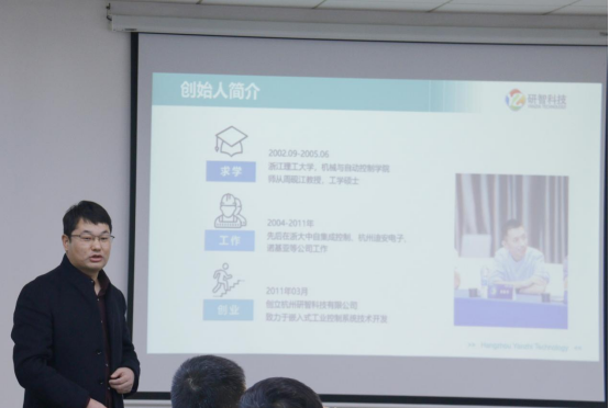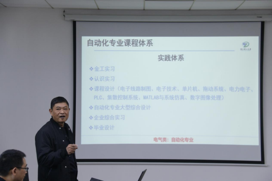 的基本情况、发展历程、师资团队、人才培养、科研成果以及特色研究方向进行了总体介绍,以促进企业导师们对学院情况的进一步的了解,并表达了对企业导师支持学院本科生人才培养工作的感谢。潘海鹏从专业背景、培养目标、课程体系及就业去向四个方面详细分析了自动化系学科发展的情况。