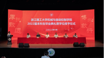 2022届本科生毕业典礼暨学位授予仪式在国际会展中心举行。学院党委书记苏志俭、院长李秦川、学院95级校友、杭州锐冠科技有限公司董事长陈小兵、学院副院长鲁玉军、吴震宇、潘骏及各系主任、各办公室、教师代表、毕业班班主任、辅导员出席此次典礼,与全体2022届本科毕业生共同见证这一青春的难忘时刻。典礼由学院党委副书记陆秋萍主持。