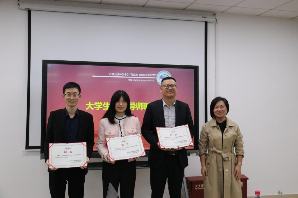 活动现场,陈定游与美仪阿里部经理周于超、人力资源部经理王婉被聘为大学生成长导师。