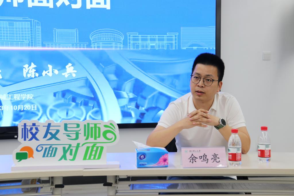 余鸣亮2006年入学我校机械制造及其自动化专业,现任浙江联大锻压有限公司总经理、瑞安市政协十四届委员、浙江省阀门标准委员会委员,他向同学们分享了自己的成长经历,他讲述了自己从学生时代到步入社会的心路历程,告诉同学们成长的道路并不总是一帆风顺,也可能充满了迷茫和困惑,最重要的是不要惧怕迷茫,要勇敢地去尝试和探索。他说:“迷茫是成长的必经阶段,只有通过不断的尝试和挑战,我们才能找到真正适合自己的道路。”