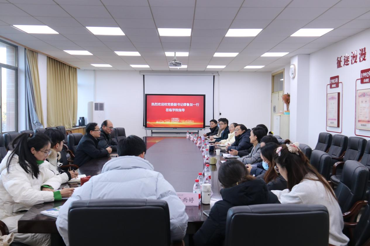 会议伊始,苏志俭首先对缪鲁加一行的到来表示欢迎,对学校党委的指导和关心表示感谢。随后,苏志俭介绍学院办学历史、办学现状,重点介绍了党建工作代表性成果和标杆院系培育创建工作等情况。他表示,学院始终坚持党建引领事业融合发展,将人才培养作为第一要务,深化“党建过硬、品牌集群、深度融合、业绩突出”的工作理念,强化现代化建设人才支撑。