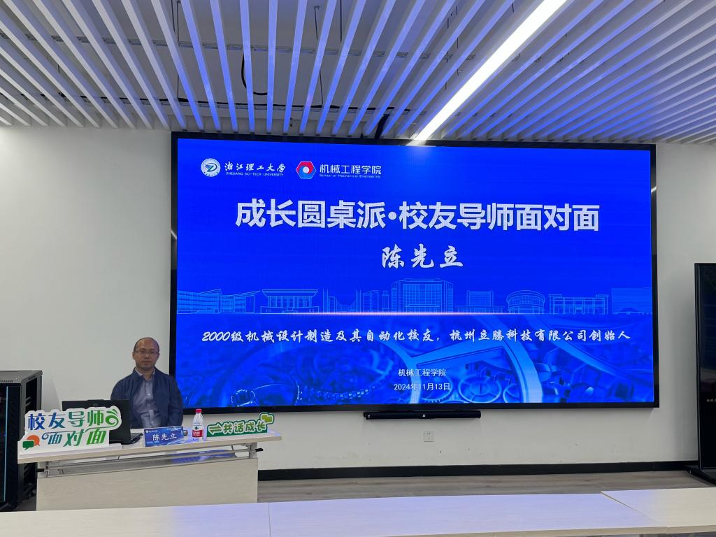 2000级机械设计制造及其自动化专业校友、杭州立腾科技有限公司执行董事陈先立作为“校友导师”,为学员们带来题为《回归校园,共话创业之路》的专题讲座,分享其作为创业者的心路历程和人生经验。