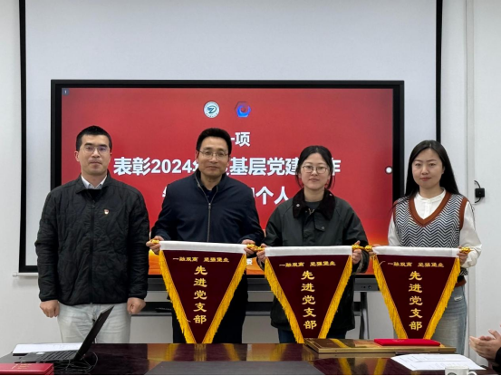 2024年度考核优秀党支部,学院党委委员、副院长向忠授“先进党支部”旗。