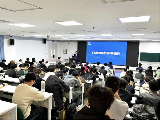 随后,严博带来了题为《关于科学研究能力提升的一些思考》专题报告,他从大家熟悉的《长安三万里》中高适一角为切入口,描绘了研学生活的“十年磨一剑”。他围绕学术论文阅读、科研文献检索、前沿动态把握、科学问题凝练、科学实验设计、结果有效分析、科研创新挖掘作了详细的阐述,分享了具体的方法和技巧。面对生成式人工智能技术的兴起,他还结合自身科研经历给出了意见建议。他指出,生成式人工智能是科研范式变革的重要驱动力,但绝不能成为思维惰性的温床。他强调,面对AI生成内容的版权归属、学术伦理等新问题,大家更要保持清醒认知,在享受技术红利的同时守牢学术道德底线,让人工智能真正成为攀登科研高峰的“脚手架”而非“绊脚石”。