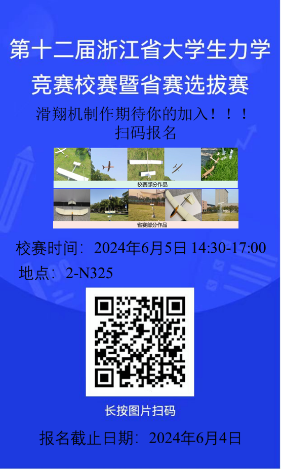 2024年第十二届浙江省大学生力学竞赛即将开始,省赛包括个人赛(个人闭卷笔试,理论力学和材料力学综合为一套试卷)和团体赛(团队协作,竞赛题目为:火箭助推遥控滑翔机制作与飞行),浙江省大学生力学竞赛为学校认定的一类竞赛。