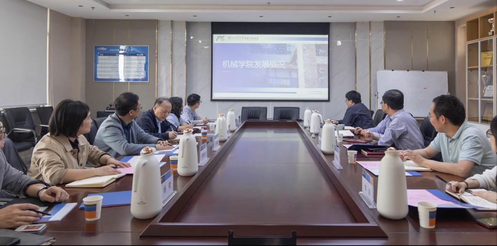 党委书记潘柏松详细介绍了学院基本情况,并以“推进五大建设,打造党建工作五大标杆”为主题,从党建引领综合改革、治理创新、人才培养、专业建设、科研创新、团队打造等方面介绍了学院党建和事业发展融合互促的思路和成熟经验。