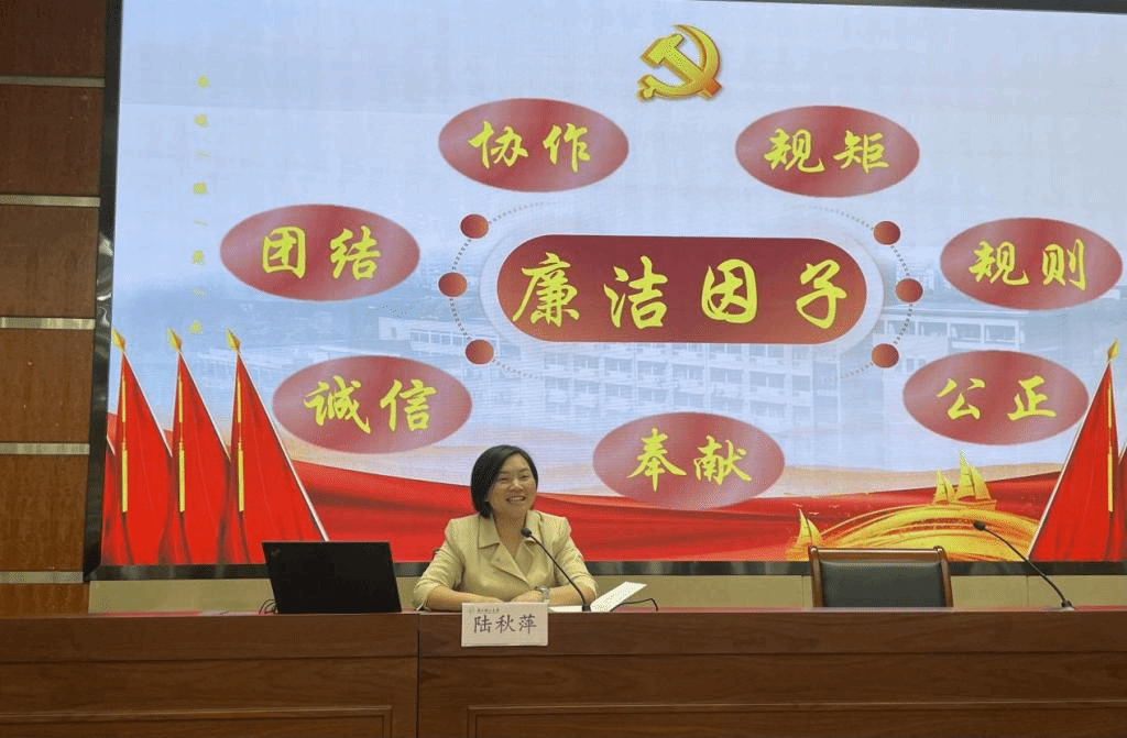 为切实加强新生党员的教育培养,引导党员树立正确的廉洁观念和学术导向,18禁 于10月22日下午在行政楼二楼报告厅举行第四季度廉洁教育“季季谈”活动。学院党委副书记、纪委书记陆秋萍出席并为全体2024级新生党员上廉洁教育专题党课,活动由学院党委组织员吴华雄主持。