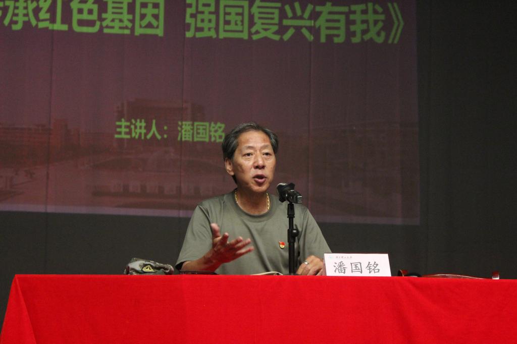 潘国铭在1984年曾参加对越自卫反击战,他不仅是一名退伍老兵,还是一位有着多年党龄的老党员,讲台上,他讲述了对越自卫反击战的亲身经历,惨烈的712炮战诉说着国防建设是重中之重。他还讲述了战争的残酷以及革命前辈们在战争中的坚韧意志并希望同学们将军训作为起点,形成良好作风,生活中“对号入座”,规避不良习惯,发出自己的光和热。